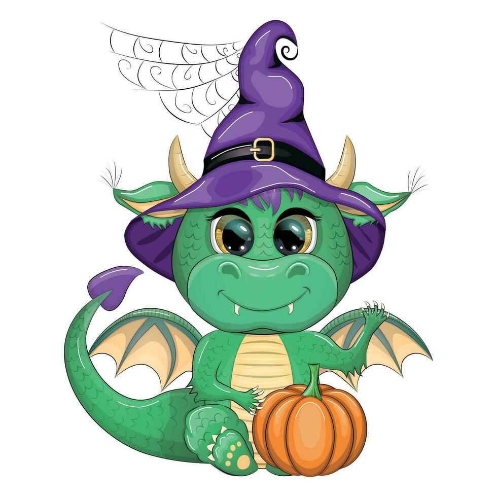 Source : www.freepik.comCute cartoon green dragon in a purple magic hat, Halloween